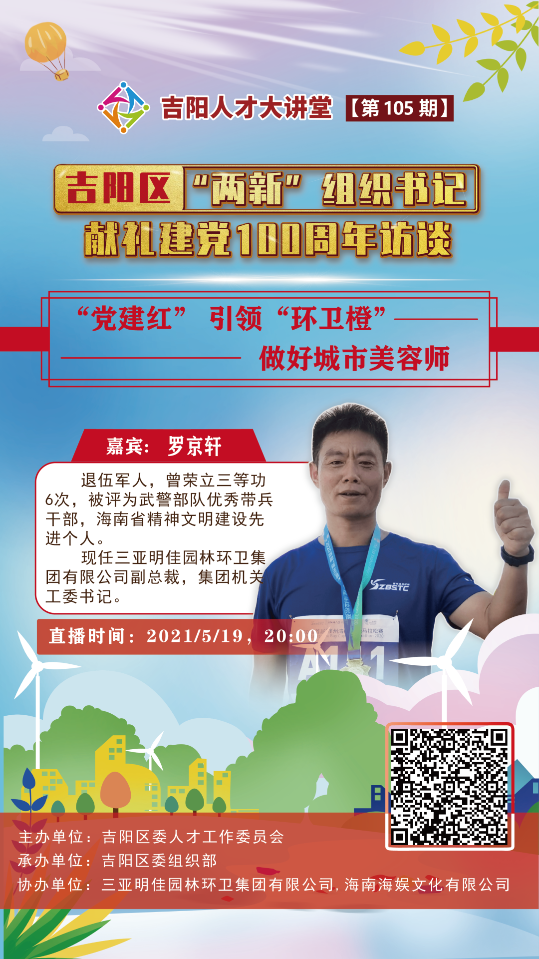 近日,第105期吉陽人才大講堂邀請到三亞明佳園林環(huán)衛(wèi)集團有限公司副總裁、集團機關工委書記羅京軒分享以“黨建紅”引領“環(huán)衛(wèi)橙”,助力城市清潔的好經驗、好做法,直播吸引近25.48萬人次在線觀看,其中不少網友為來自全國各地的環(huán)衛(wèi)工人。