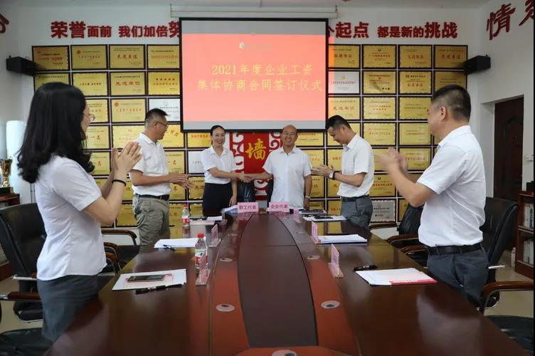 7月15日,《企業(yè)工資專項集體合同》簽訂儀式順利舉行。公司總裁陳云、工會主席高斐斐等6名協(xié)商代表參加了本次簽訂儀式。陳云表示,公司工會在開展此次集體協(xié)商過程中,能夠以企業(yè)職工的意愿和需求為出發(fā)點(diǎn),以切實維護(hù)職工權(quán)益為目標(biāo),積極引導(dǎo)職工做企業(yè)發(fā)展的主人,不僅為企業(yè)和職工協(xié)商共謀搭建了平臺,還為企業(yè)注入了活力和生機(jī),實現(xiàn)了企業(yè)和職工雙方的共贏。